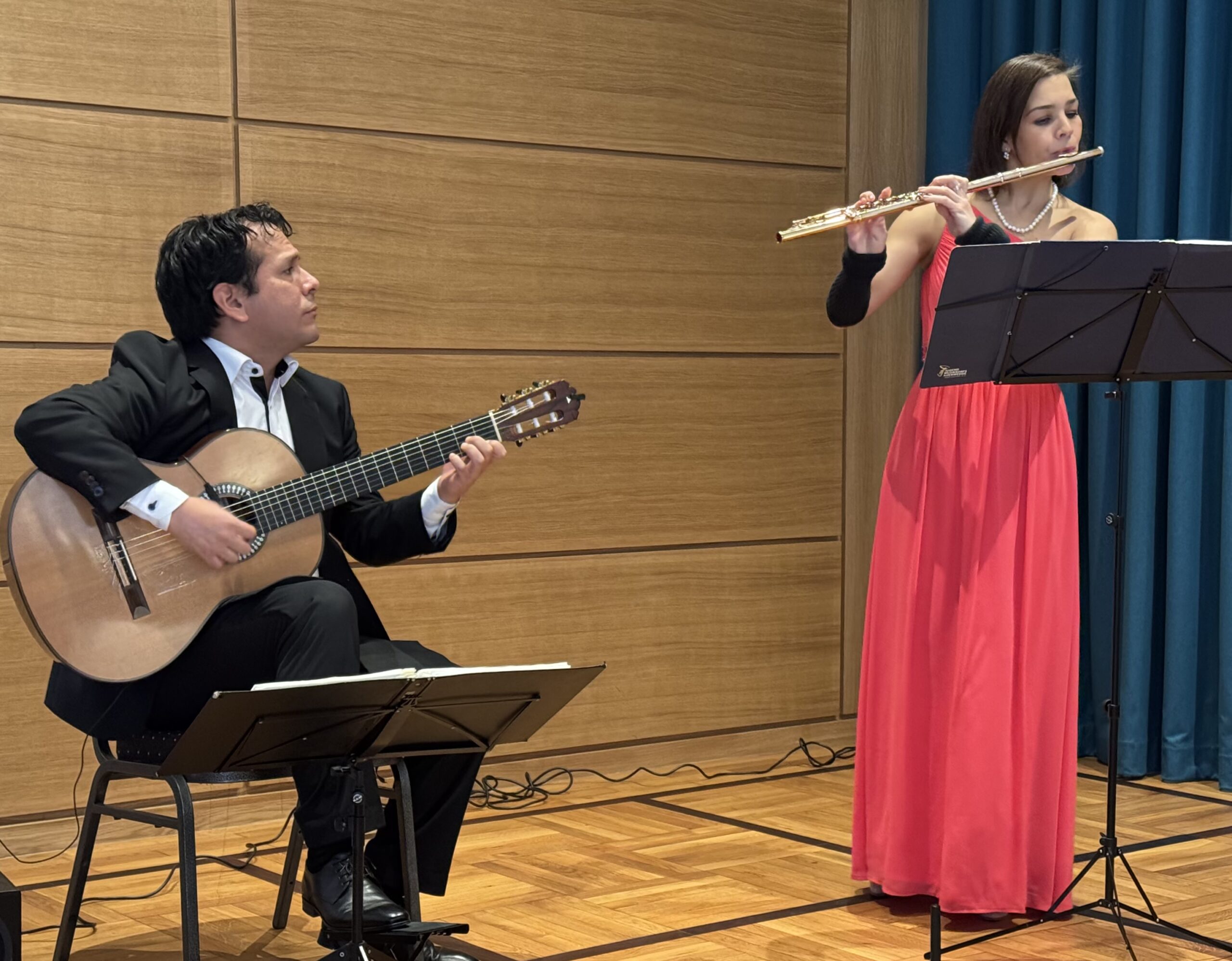 Das „Arie Dúo“ sendete mit ihren wunderbaren Interpretationen einen schimmernden Hoffnungsstrahl in die Runde der Gäste und Brüder. Zwischen den einzelnen Rednerinnen und Rednern spielten sie eine vielfältige Mischung unterschiedlichster klassischer Stücke. Vor allem auch das für sie geschriebene „Pottpourie“ aus der „Fledermaus“ und das eigene Arrangement für Gitarre und Querflöte aus „Carmen“ hinterließen bei den Anwensenden Gänsehautgefühle.